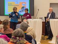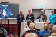 OKR a.D. Karen Hinrichs, zuletzt Direktorin des Friedensinstituts in Freiburg, sowie OKR a.D. Antje Heider-Rottwilm, zuletzt Vorsitzende des Europäischen friedenskirchlichen Netzwerks Church and Peace, berichteten über die Wirkung der Szenarien und der Initiative Sicherheit neu denken im kirchlichen Raum.