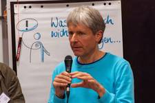 Prof. Dr. Olaf Müller von der Humboldt-Universität in Berlin bereicherte uns als Türöffner in Richtung Medien, Gesellschaft und Politik mit seinem Ansatz des relativen Pazifismus und seinen Vorschlägen zur Verbreitung Sozialer Verteidigung.